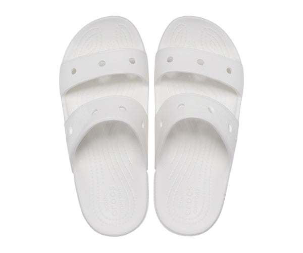 The look and feel of our comfortable Classic Clog and Crocs Slide, now in sandal form. Two upper straps offer even more comfort and foot security, and seven holes on each shoe allow you to personalize with Jibbitz™ charms. We'll even get you started by including a Crocs logo charm. Original Croslite™ foam cushion will keep you supported from the beach to backyard gatherings and beyond.