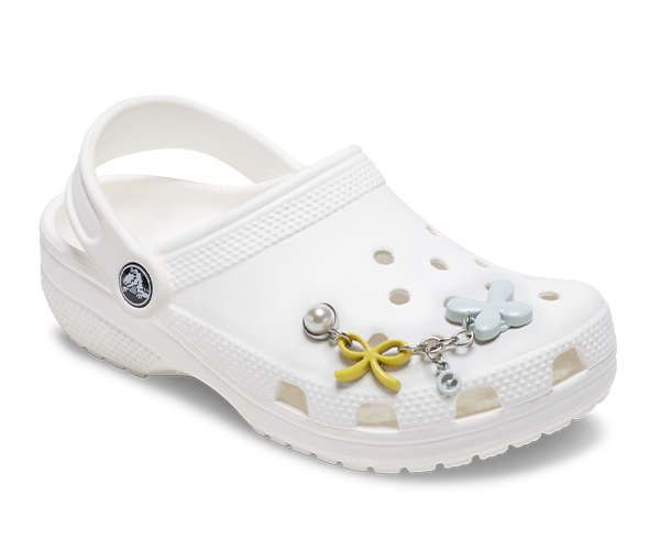 Jibbitz charms are fun little images, letters, sayings, characters, and bits of pop culture mounted on a post to pop into the holes of your Crocs Classics. With 13 holes on each Crocs Classic, you can sport up to 26 at a time.