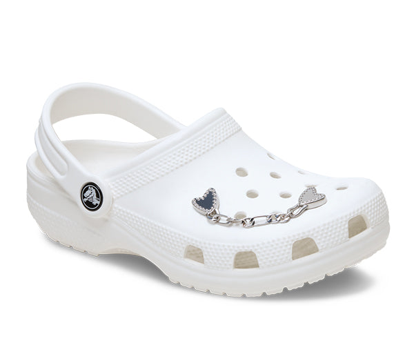 Jibbitz charms are fun little images, letters, sayings, characters, and bits of pop culture mounted on a post to pop into the holes of your Crocs Classics. With 13 holes on each Crocs Classic, you can sport up to 26 at a time.