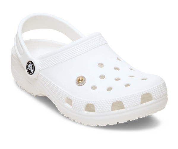 Jibbitz charms are fun little images, letters, sayings, characters, and bits of pop culture mounted on a post to pop into the holes of your Crocs Classics. With 13 holes on each Crocs Classic, you can sport up to 26 at a time.