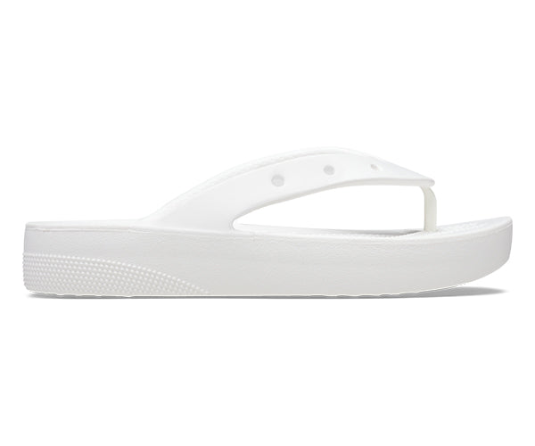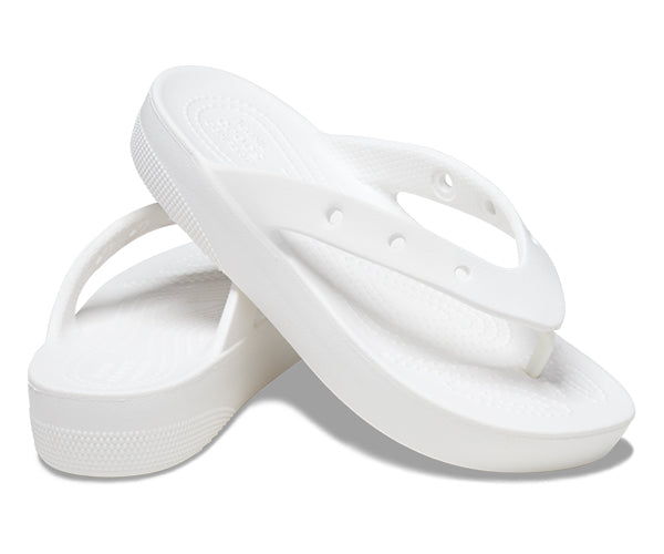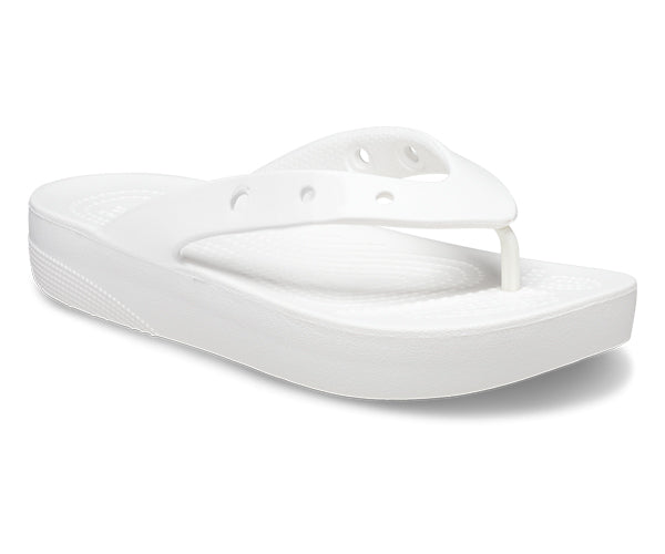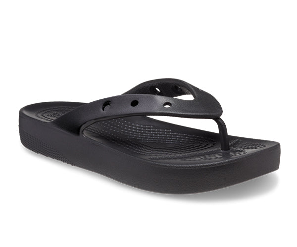 Introducing the Classic Platform Flip — a stylish revamp of our Classic Crocs Flip that features an elevated, textured heel and six holes in each SANDALS to allow for personalization with Jibbitz charms. Classic Croslite foam cushions each step and keeps them light and easy to wear — that's how to be comfortable in your own shoes.