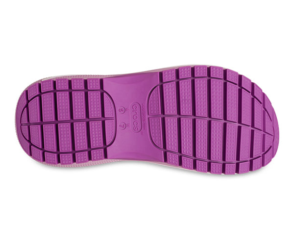 The look and feel of our Classic Mega Crush Clog are now available in sandal form. Introducing the Classic Mega Crush Sandal, featuring an enhanced rubber tread, updated detailing around the outsole and a platform ready to take any outfit to the next level. A two-strap upper and secure backstrap help ensure a secure fit, while boasting holes for personalization with Jibbitz™ charms. Are you ready for your new crush?