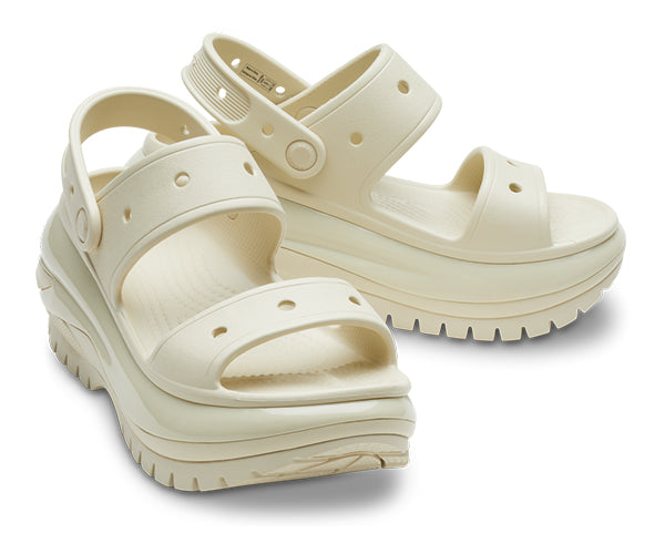 The look and feel of our Classic Mega Crush Clog is now available in sandal form. Introducing the Classic Mega Crush Sandal, featuring an enhanced rubber tread, updated detailing around the outsole and a platform ready to take any outfit to the next level. A two-strap upper and secure backstrap help ensure a secure fit, while boasting holes for personalization with Jibbitz™ charms. Are you ready for your new crush?