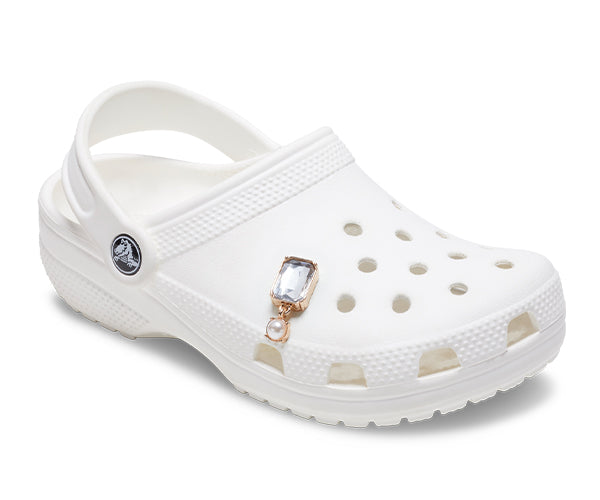 Jibbitz charms are fun little images, letters, sayings, characters, and bits of pop culture mounted on a post to pop into the holes of your Crocs Classics. With 13 holes on each Crocs Classic, you can sport up to 26 at a time.
