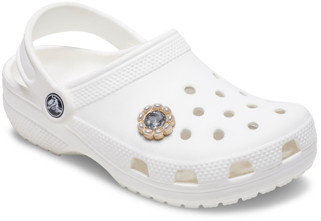 Jibbitz charms are fun little images, letters, sayings, characters, and bits of pop culture mounted on a post to pop into the holes of your Crocs Classics. With 13 holes on each Crocs Classic, you can sport up to 26 at a time.