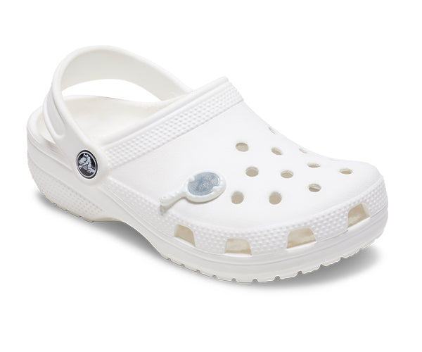 Jibbitz charms are fun little images, letters, sayings, characters, and bits of pop culture mounted on a post to pop into the holes of your Crocs Classics. With 13 holes on each Crocs Classic, you can sport up to 26 at a time.
