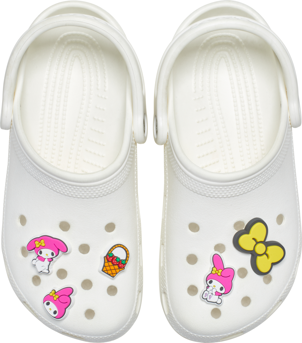 Jibbitz charms are fun little images, letters, sayings, characters, and bits of pop culture mounted on a post to pop into the holes of your Crocs Classics. With 13 holes on each Crocs Classic, you can sport up to 26 at a time.