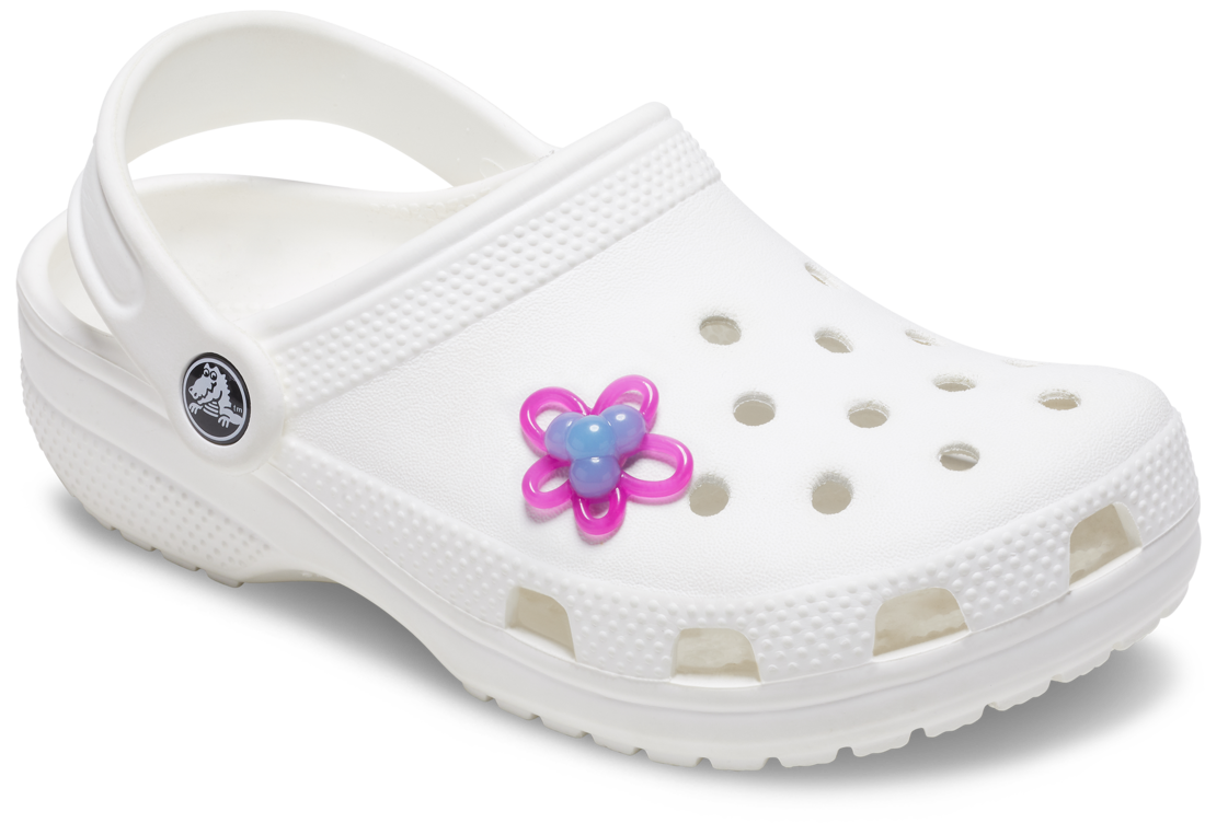 Jibbitz charms are fun little images, letters, sayings, characters, and bits of pop culture mounted on a post to pop into the holes of your Crocs Classics. With 13 holes on each Crocs Classic, you can sport up to 26 at a time.